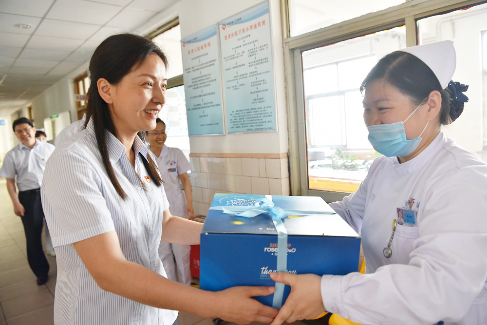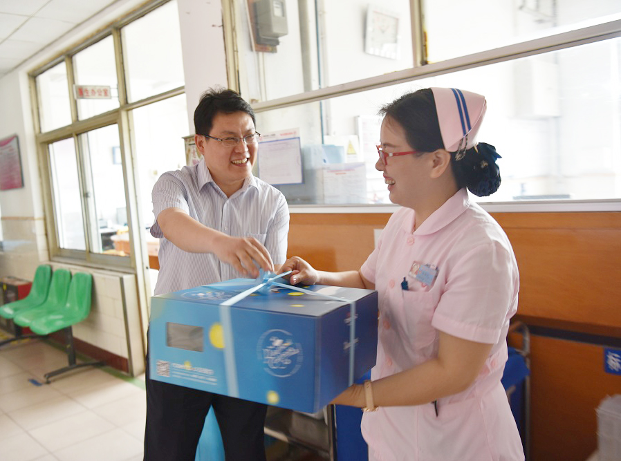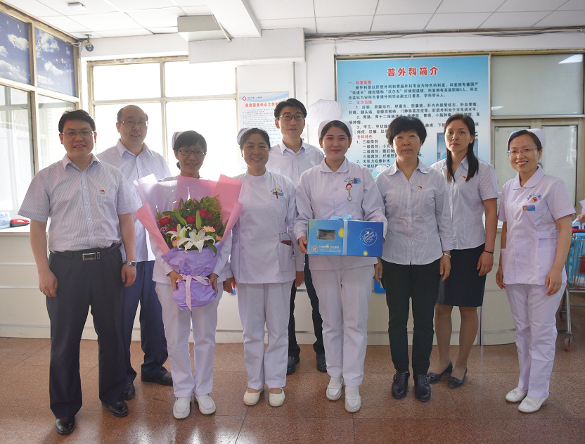 院領(lǐng)導一行把飽含著(zhù)醫院溫暖和關(guān)愛(ài)的鮮花、蛋糕送到臨床一線(xiàn)護理人員手中,每到一處,院領(lǐng)導都與護士們親切握手交談,這鮮花和蛋糕既帶來(lái)了節日祝福也帶來(lái)了醫院領(lǐng)導對護理人員最真摯的愛(ài)護。