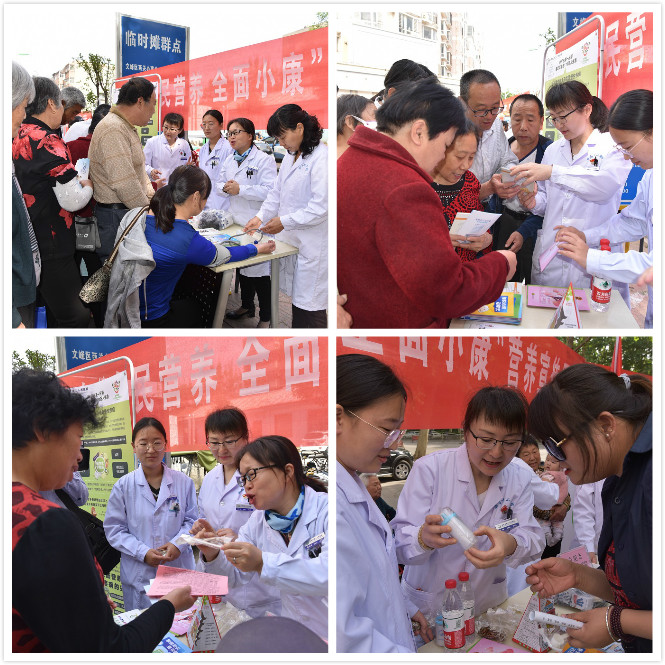今年是全民營(yíng)養周活動(dòng)的第五個(gè)年頭,為貫徹落實(shí)《國民營(yíng)養計劃(2017-2030年)》,進(jìn)一步推進(jìn)營(yíng)養健康科普宣教活動(dòng)常態(tài)化,我院與文峰區街道辦事處、人民醫院、腫瘤醫院、地區醫院、中醫院、省營(yíng)養科普專(zhuān)家、市疾控中心、文峰區疾控中心一起于2019年5月14日上午在超越廣場(chǎng)舉行了全民營(yíng)養周大型宣傳活動(dòng)。