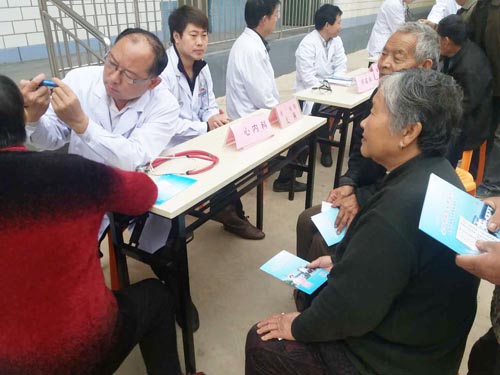 10月20日上午,內科支部黨員,在健教部協(xié)同下,一行約10人組成醫療服務(wù)隊秉著(zhù)踐行“兩學(xué)一做”,服務(wù)惠及廣大群眾的宗旨,深入到高莊鄉開(kāi)展送健康義診活動(dòng),為村民們進(jìn)行體檢和健康咨詢(xún)。