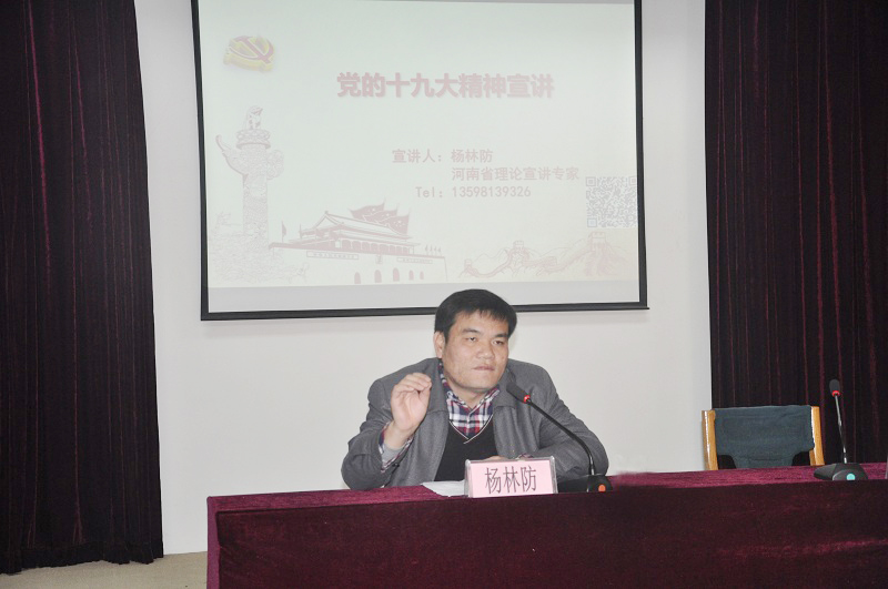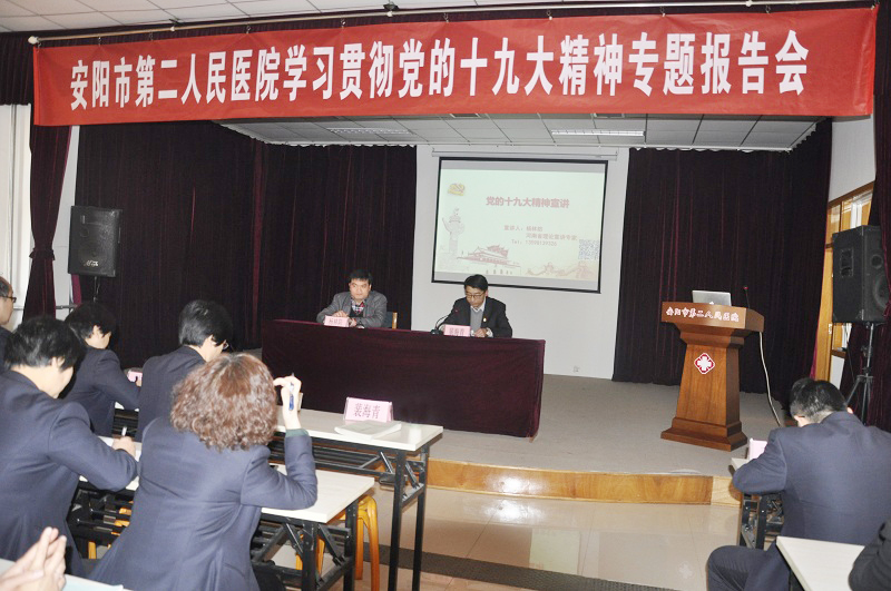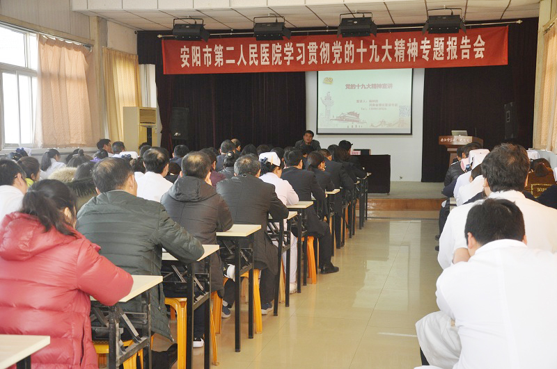 為深入學(xué)習貫徹黨的十九大精神,加快醫院發(fā)展步伐。12月6日,我院黨委特邀市委宣傳部宣講團成員、河南省青年理論宣講專(zhuān)家楊林防為我院廣大黨員干部職工做十九大精神專(zhuān)題輔導,領(lǐng)導班子及全體黨員干部職工參加了報告會(huì ),會(huì )議由黨委委員、院長(cháng)裴海青主持。