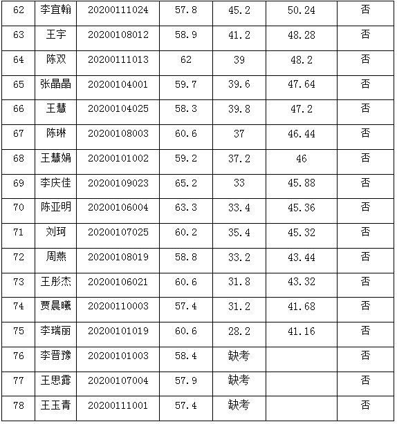根據《安陽(yáng)市第二人民醫院2020年公開(kāi)招聘護理人員公告》有關(guān)規定,體檢按擬聘崗位總成績(jì)從高分到低分1:1的比例確定進(jìn)入體檢人員。現將面試成績(jì)、總成績(jì)及進(jìn)入體檢程序人員名單予以公布,請進(jìn)入體檢程序的考生于2020年12月25日上午8:00攜帶身份證空腹到市二院人事科參加體檢,體檢費用自理。