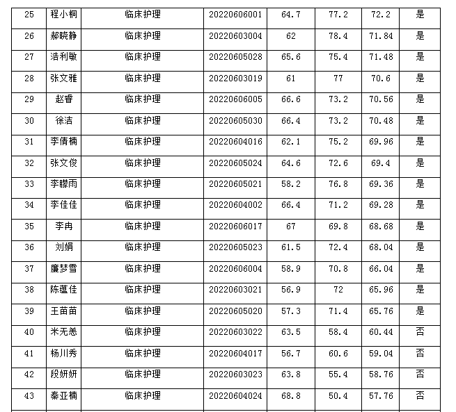 根據《安陽(yáng)市第二人民醫院2022年公開(kāi)招聘工作人員公告》有關(guān)規定,體檢按擬聘崗位總成績(jì)從高分到低分1:1的比例確定進(jìn)入體檢人員?,F將面試成績(jì)、總成績(jì)及進(jìn)入體檢程序人員名單予以公布,請進(jìn)入體檢程序的考生于2022年7月13日上午8:00空腹并攜帶身份證到市二院人事科參加體檢,體檢費用自理。
