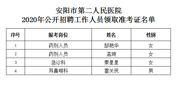 安陽(yáng)市第二人民醫院2020年公開(kāi)招聘工作人員領(lǐng)取準考證公告