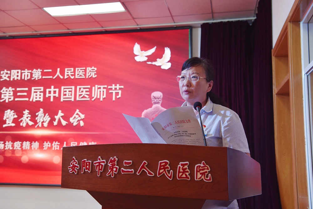 隨后,黨委委員、副院長(cháng)李敏宣讀了《安陽(yáng)市第二人民醫院關(guān)于表彰2020年度(第三屆)中國醫師節系列活動(dòng)優(yōu)秀個(gè)人的決定》。