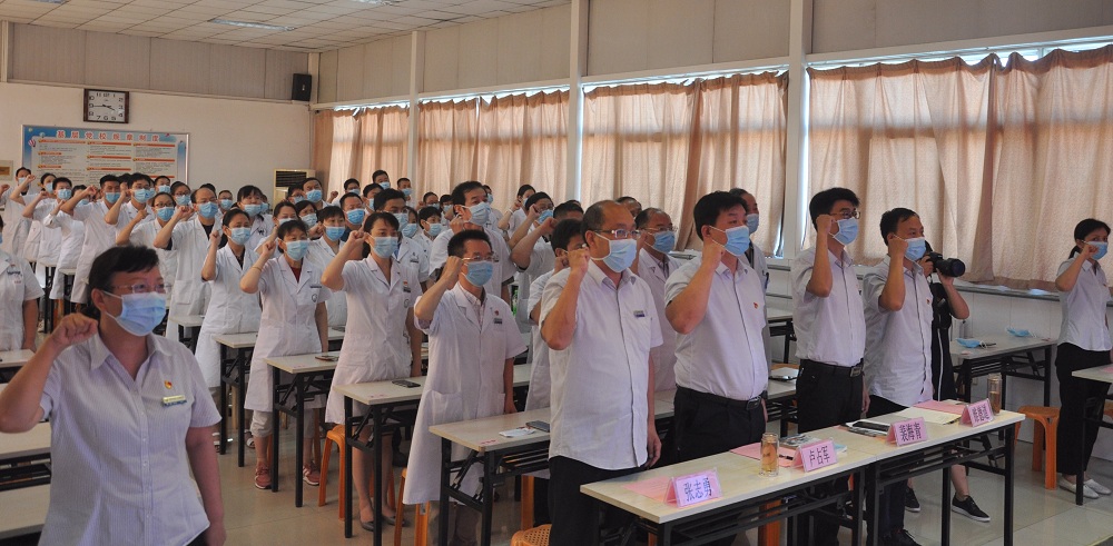 大會(huì )特別安排了臨床醫技科室副主任帶領(lǐng)在場(chǎng)全體人員集體宣誓環(huán)節。醫務(wù)科副科長(cháng)張家帥、李志超領(lǐng)誓,“我志愿獻身人類(lèi)的健康事業(yè),自覺(jué)維護醫學(xué)的尊嚴和神圣;敬佑生命,救死扶傷,平等仁愛(ài),尊師重道;誠實(shí)守信,恪守醫德,精益求精,慎思篤行……”錚錚誓言,表達了醫師獻身人類(lèi)健康事業(yè)的赤誠之心和敬佑生命,救死扶傷,甘于奉獻,大愛(ài)無(wú)疆的職業(yè)精神。