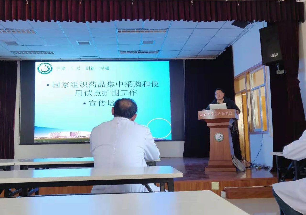 我院藥劑科科長(cháng)秦曉輝對全院臨床醫生進(jìn)行“4+7”試點(diǎn)擴圍工作培訓宣傳