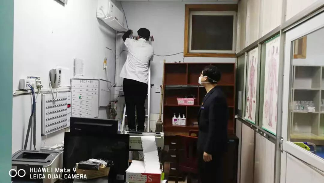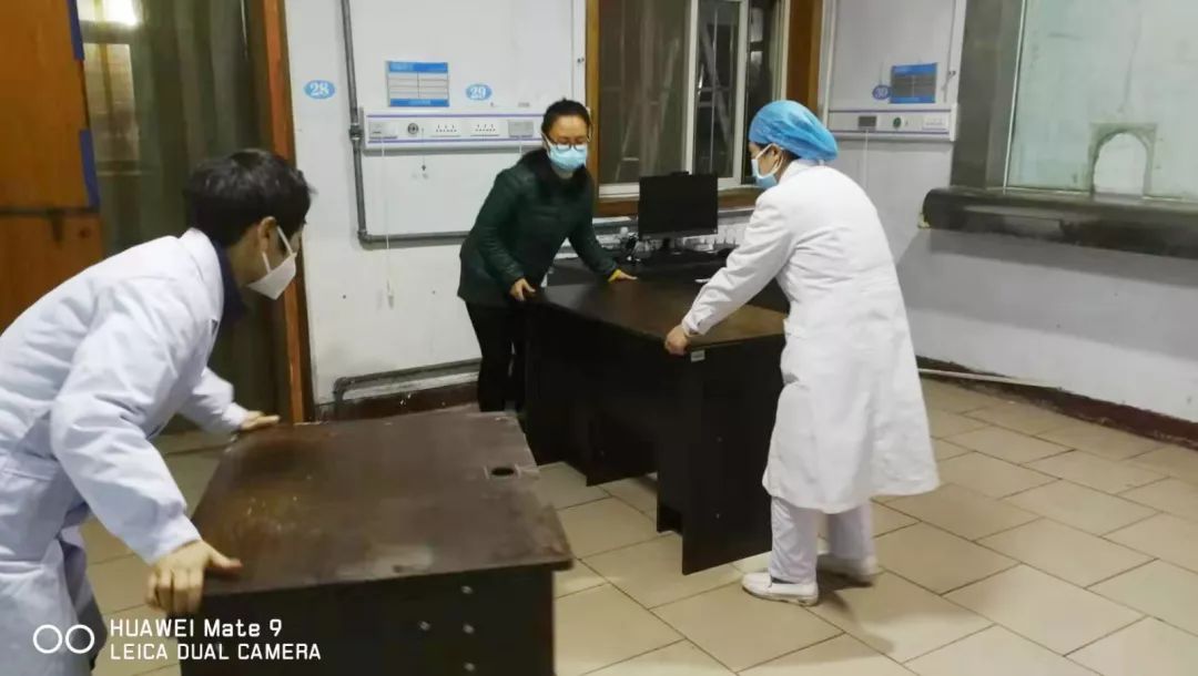 總務(wù)科克服困難全城尋找調配急需物質(zhì),滿(mǎn)足了全院應急需求;大年初三晚上在人員、物資均難調配情況下,連夜整修改造中醫科為發(fā)熱門(mén)診,僅用12個(gè)小時(shí)即達到院感整改要求;不畏疫情,工人師傅們進(jìn)入發(fā)熱門(mén)診做好維修工作,并主動(dòng)與院感辦結合承擔院內消毒噴灑工作。