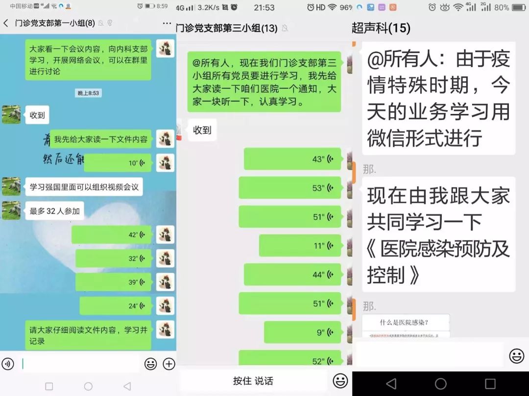 為減少聚集,支部小組會(huì )議及科室業(yè)務(wù)學(xué)習都改為微信形式進(jìn)行。