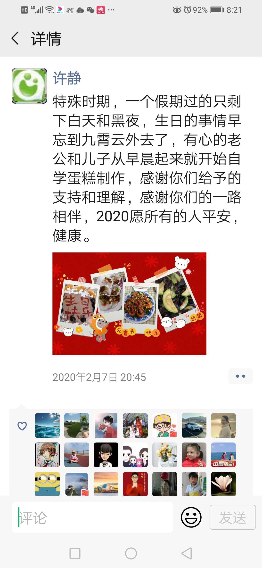 2月7日那天,她照舊從早上忙到天黑,拖著(zhù)滿(mǎn)身疲憊的回到家,剛進(jìn)門(mén),兒子就拉著(zhù)她向餐桌走去,一臉幸福地說(shuō):“媽媽?zhuān)@是我和爸爸做的生日蛋糕,祝您生日快樂(lè )!”這時(shí)她才猛然想起來(lái):今天是她48歲的生日,她一直忙于工作,竟然把自己的生日忘記了!……一瞬間飽含著(zhù)感動(dòng)和歉意的淚水奪眶而出。抗疫艱辛,家人的支持是就是源動(dòng)力。“我特別感謝家人對我工作的支持和理解,也對因為工作沒(méi)能好好陪家人而愧疚。”