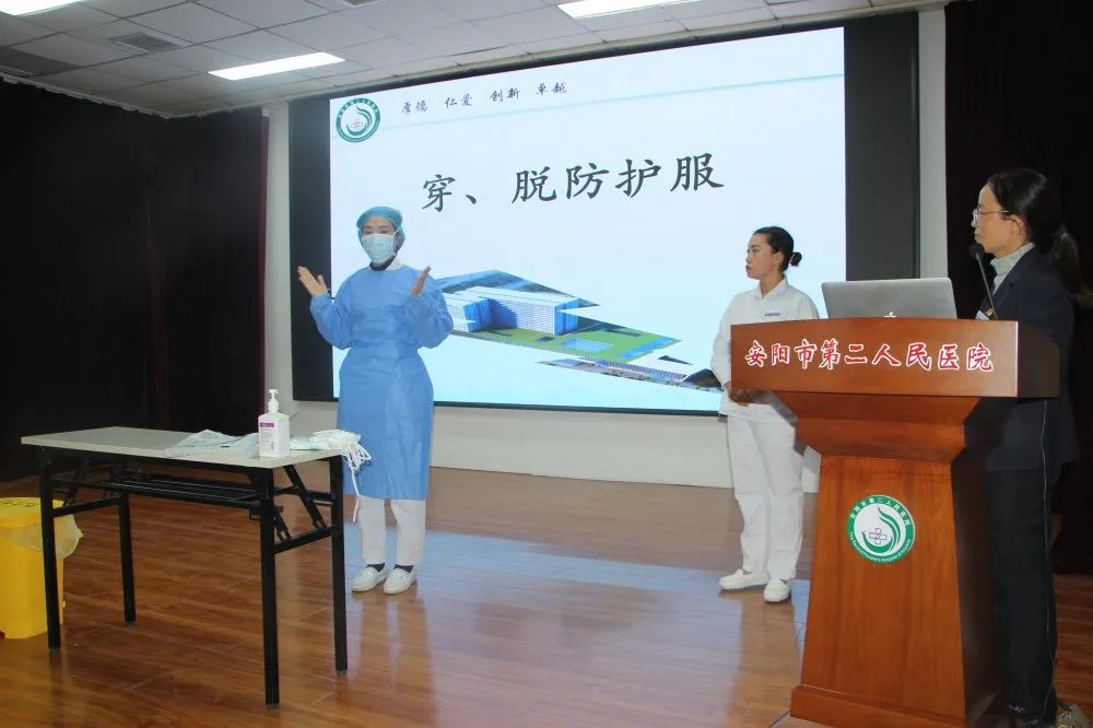 培訓后對醫務(wù)人員現場(chǎng)進(jìn)行穿脫防護用品指導